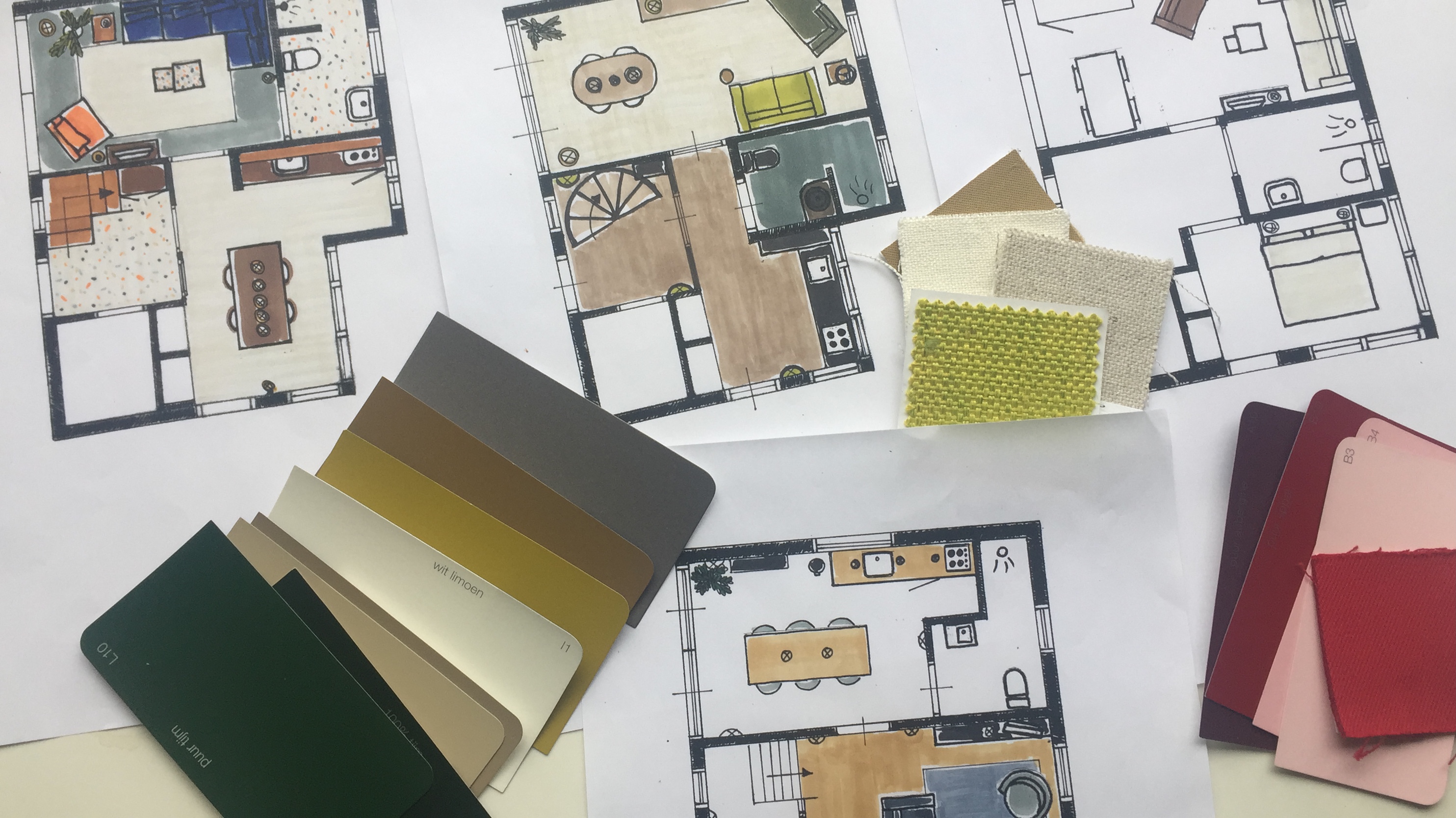 + materialenplan (raambekleding, wandafwerking, vloer)